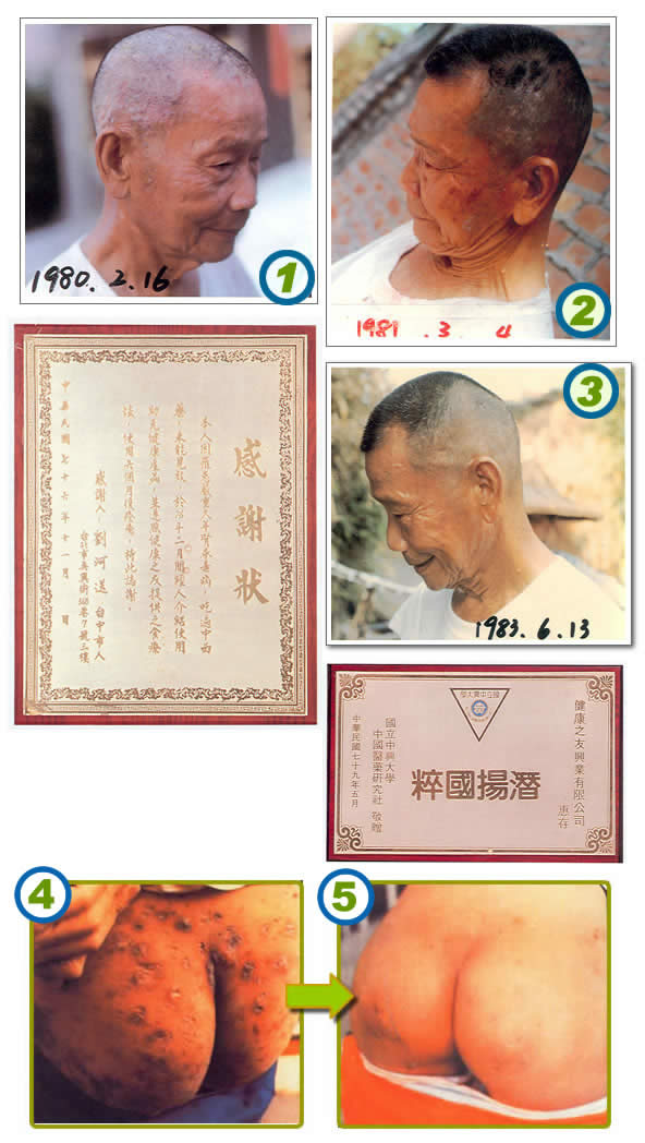 謹代表本鄉多氯聯苯中毒患者,廖國鎮、郭賜利、洪美玉、梁再發、梁金玉、梁玲珠、花金堆、花許引等百餘名患者,向台中市自由路二段九號七樓十七室財園股份有限公司至上謝意,四個多月來,不辭辛勞,除免費提供該公司產品健康食品-「金鈣力」飲用,並多次舉辦講習指導食療。使患者各種症狀改善極為顯著,使他們逐漸恢復以往體力而為生活奔波,帶給患者對痊癒有無限信心。